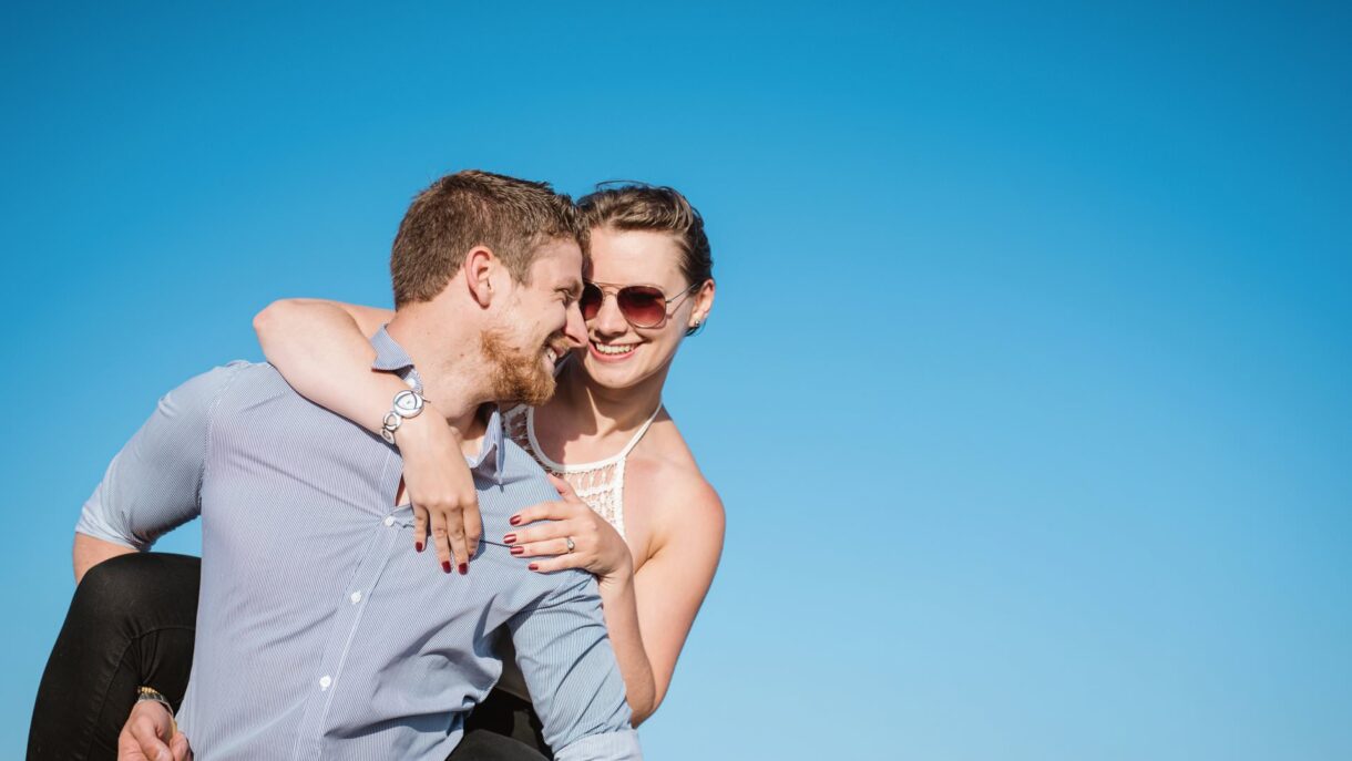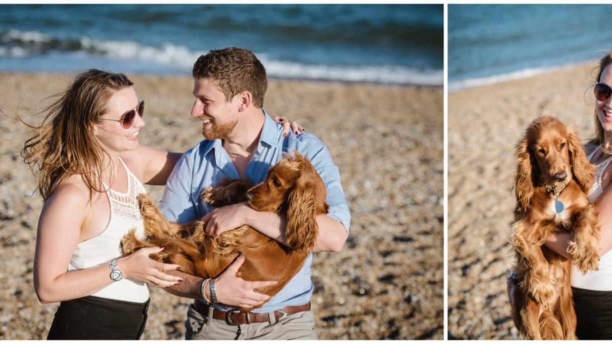 As you can see from the photos the couple had a great time on this shoot, they were so relaxed and it was lovely to be able to capture this natural joy on a gorgeous September day. Their extremely photogenic puppy, Kimmi also got involved and we got some adorable shots of them all together. It’s little additions like this that make each couples’ photoshoot their own and we love to see the different ways that couples celebrate their time together. Little Kimmi is certainly a lucky puppy to be a part of their family, these two were grinning and laughing all the way through their shoot.