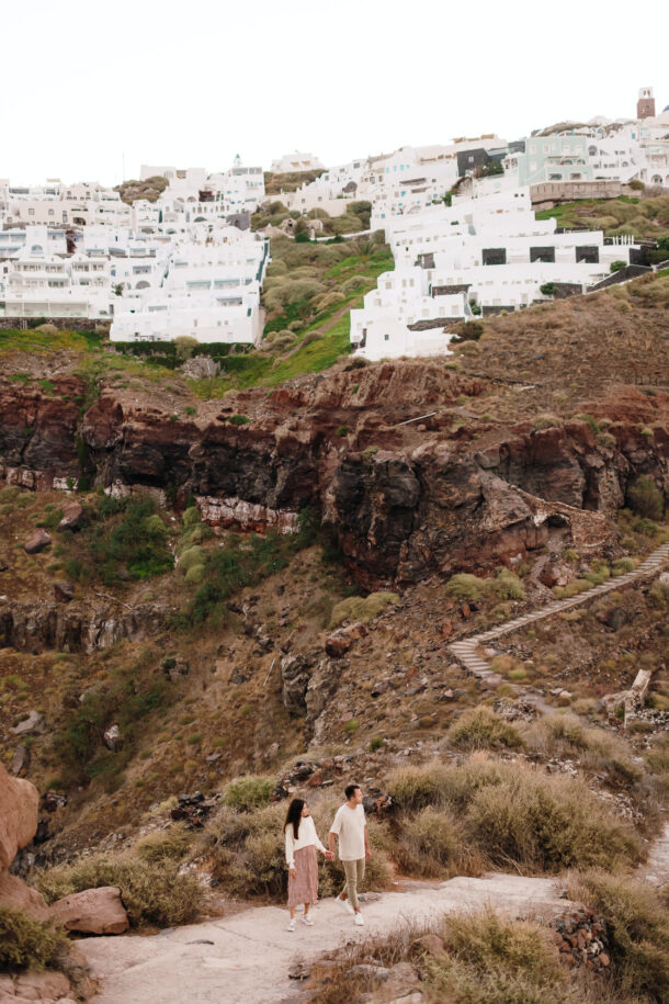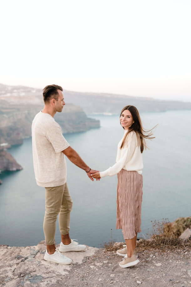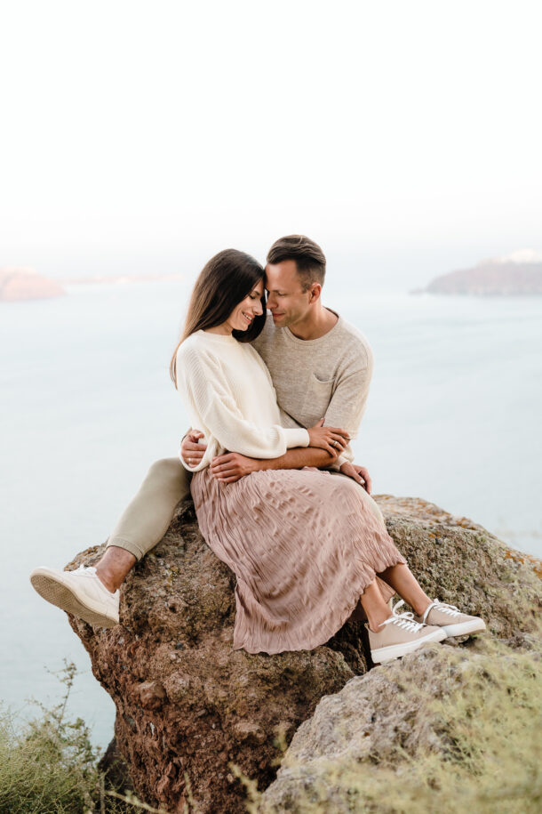 Skaros Rock and Imerovigli pre-wedding photoshoot in Santorini