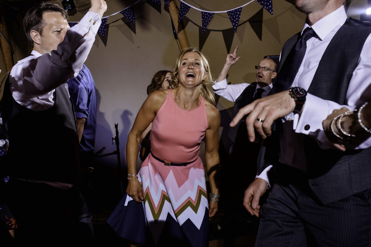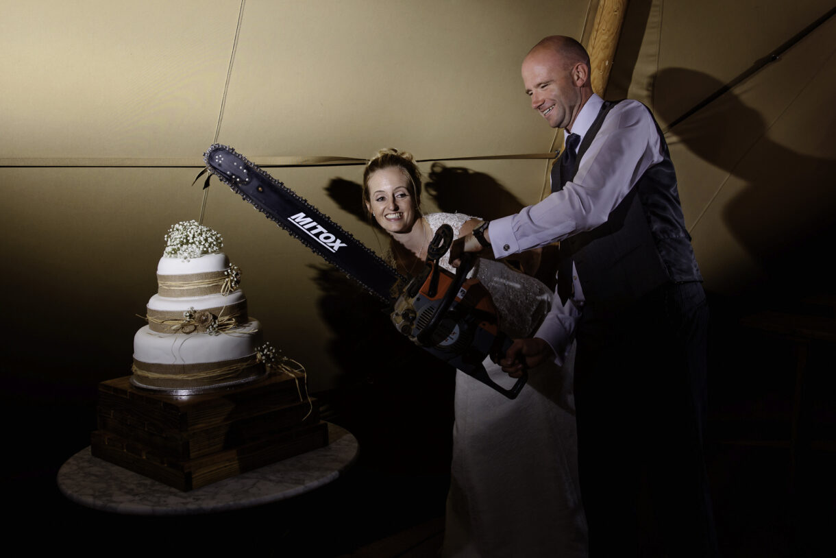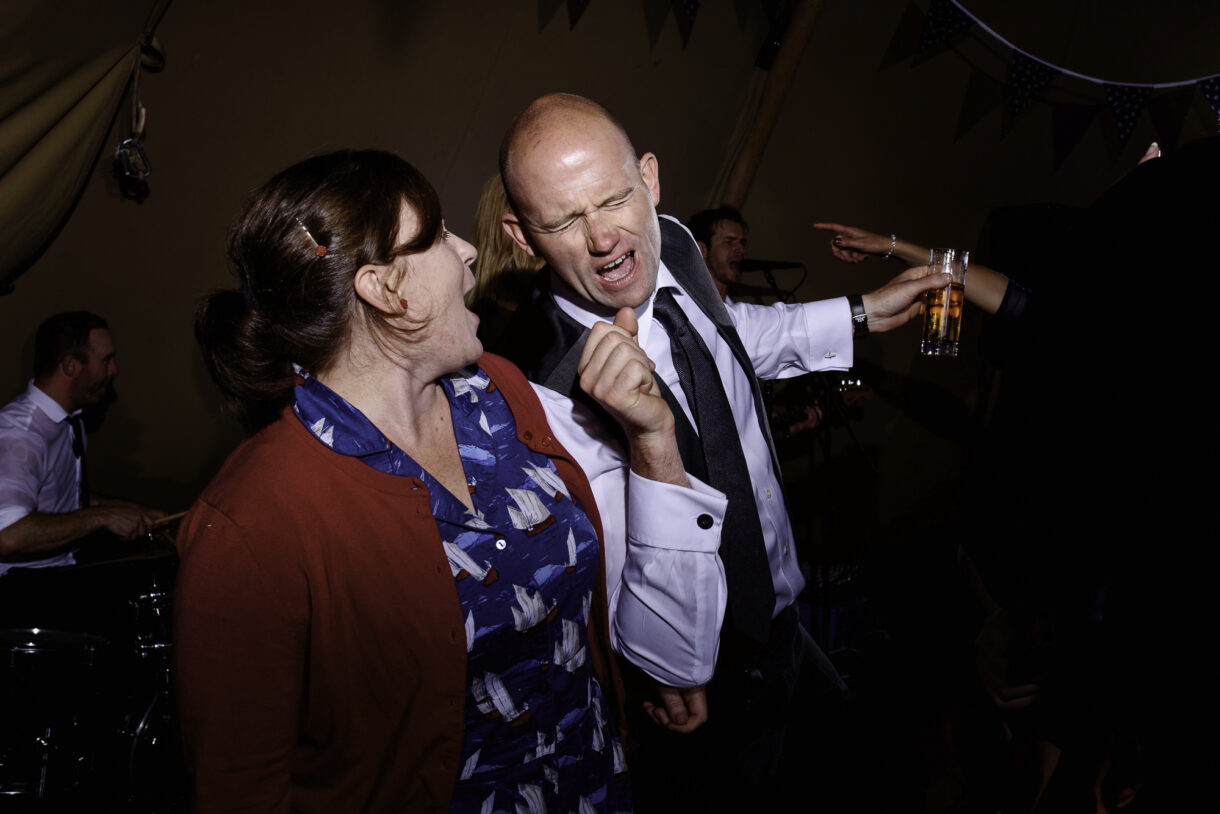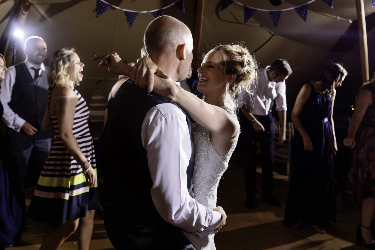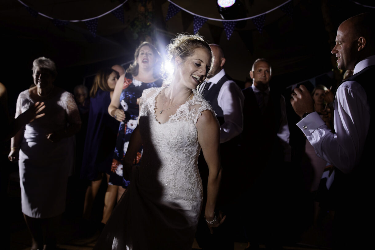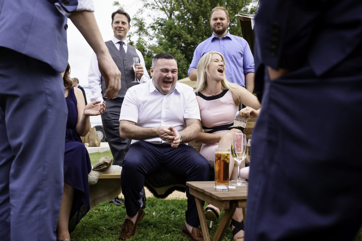 It can always be a bit of a risk to plan an outdoor event in the UK, but on this day the sun was beaming down on the couple. In fact there was not a drop of rain all day so we were able to get plenty of candid shots of our guests milling around outside, lounging on tree stumps or hay bales, and in a couple of cases, bringing the dogs to the party! A band started up in the evening and the dance floor was soon full. Many of the guests remained there long into the night only breaking away to keep warm by the fire smouldering outside, or perhaps to toast a marshmallow.