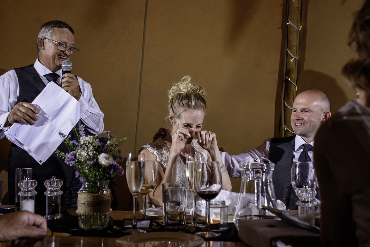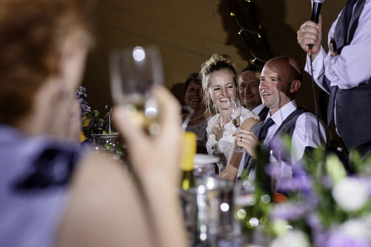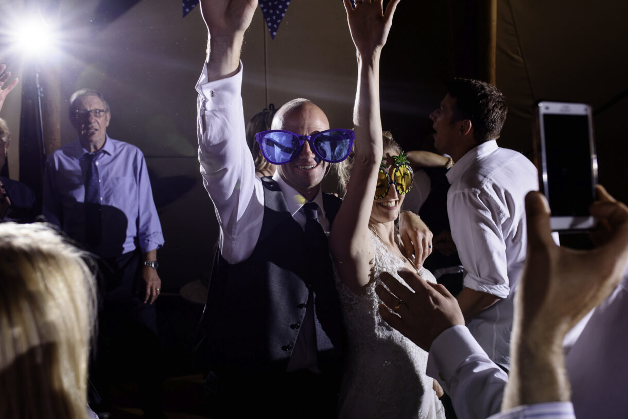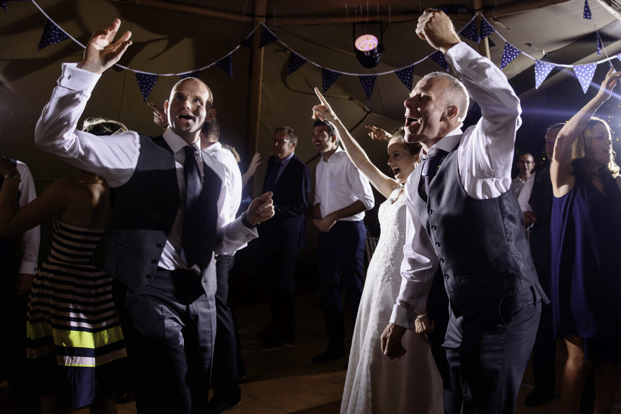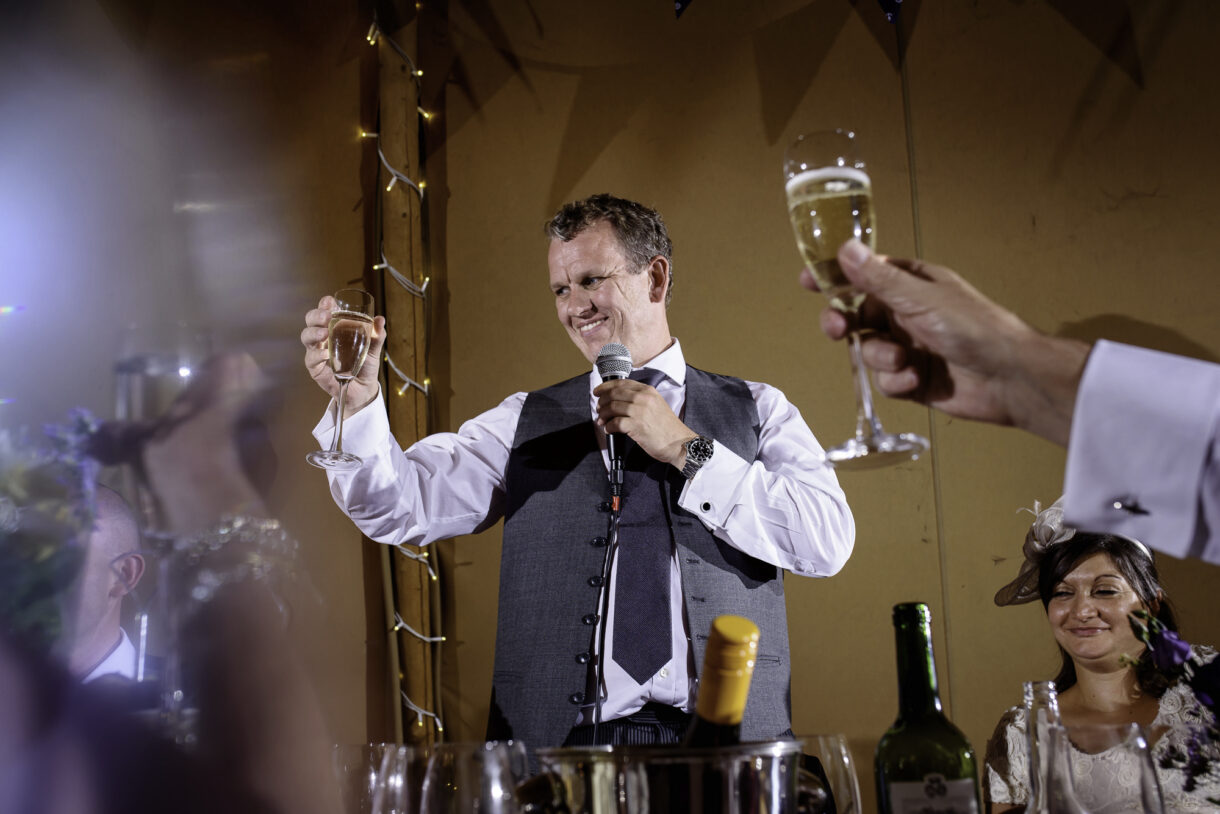 It can always be a bit of a risk to plan an outdoor event in the UK, but on this day the sun was beaming down on the couple. In fact there was not a drop of rain all day so we were able to get plenty of candid shots of our guests milling around outside, lounging on tree stumps or hay bales, and in a couple of cases, bringing the dogs to the party! A band started up in the evening and the dance floor was soon full. Many of the guests remained there long into the night only breaking away to keep warm by the fire smouldering outside, or perhaps to toast a marshmallow.