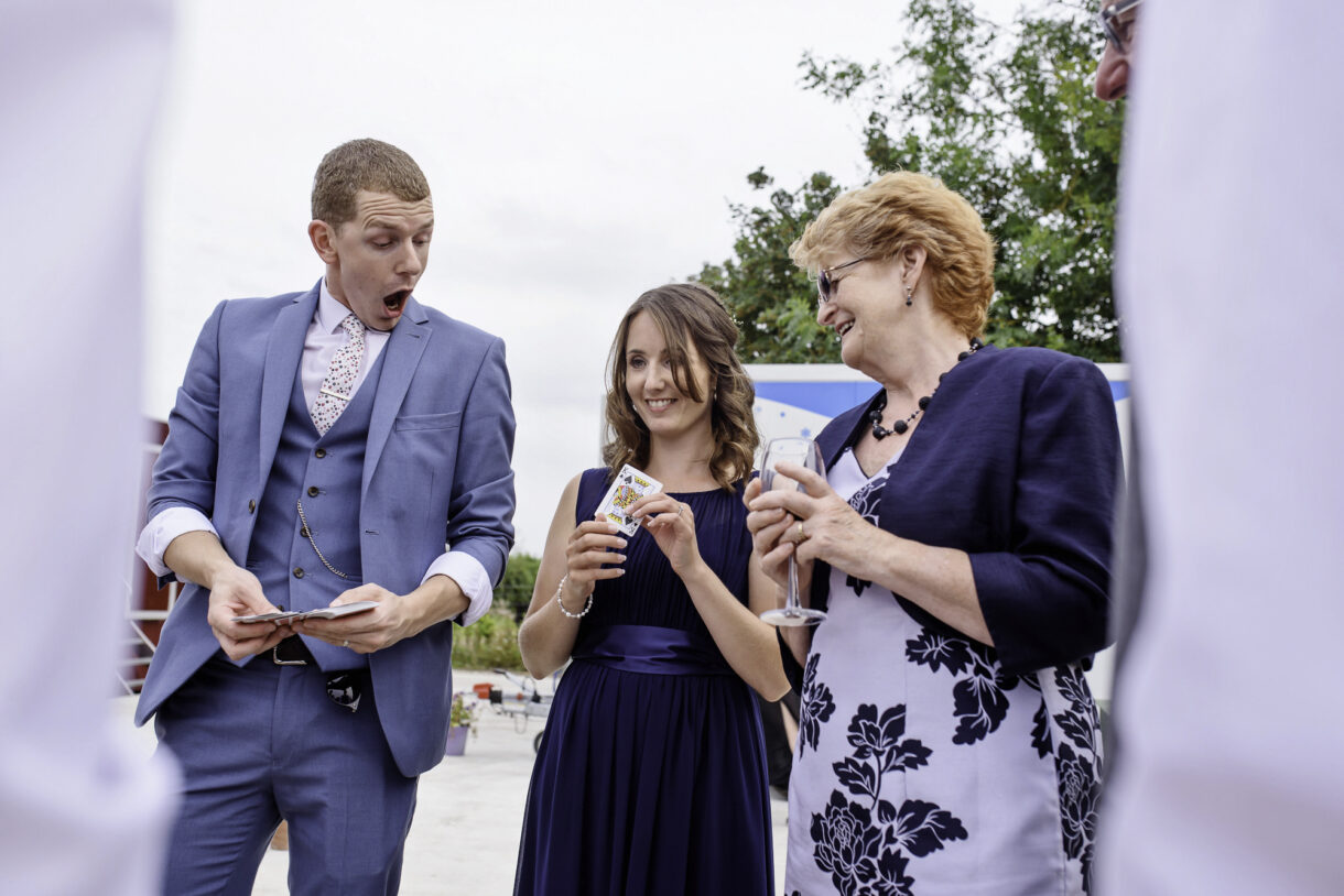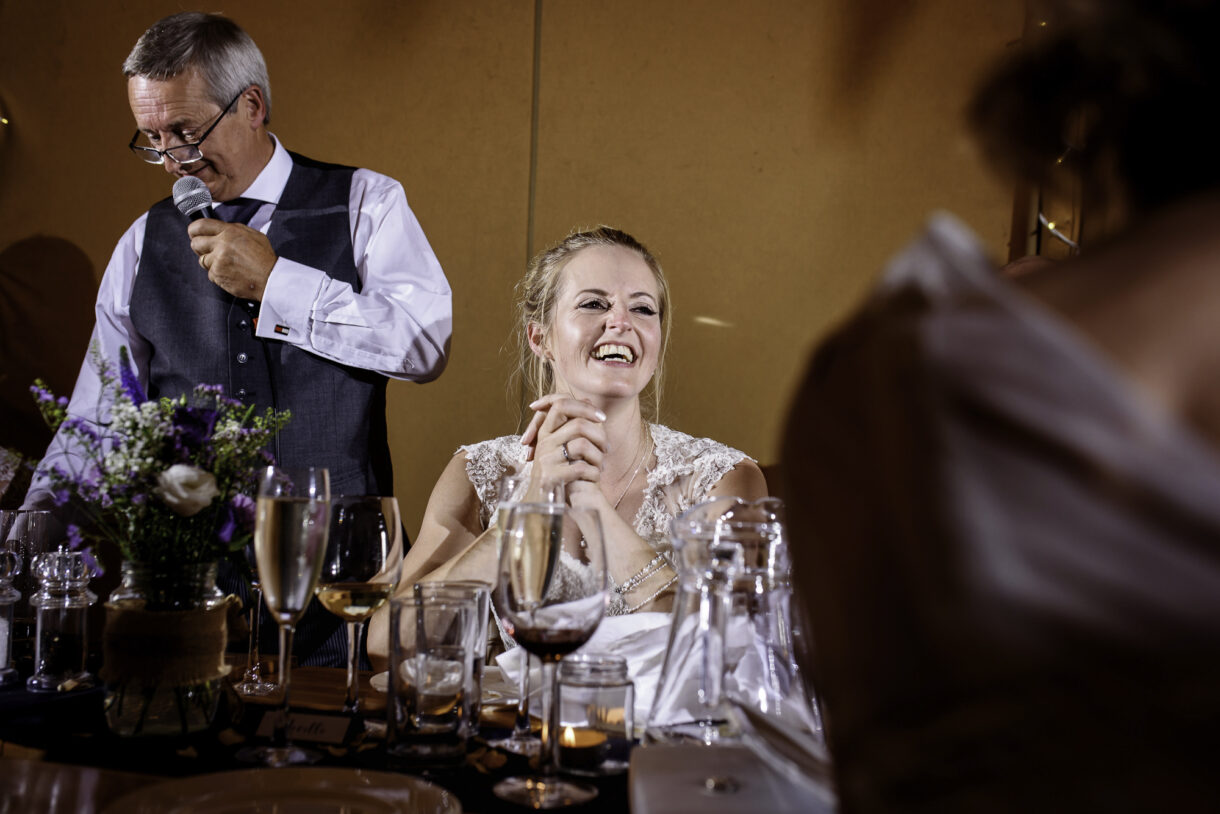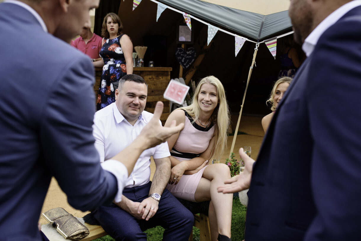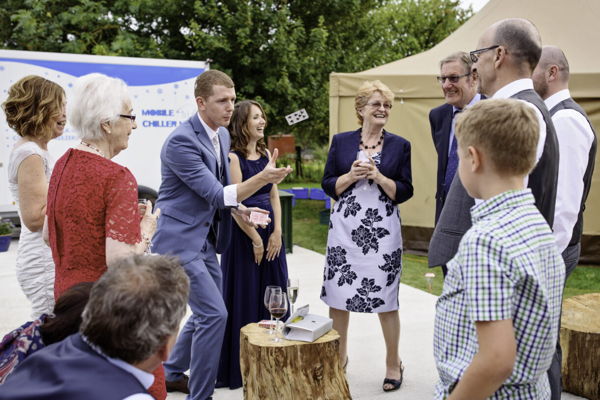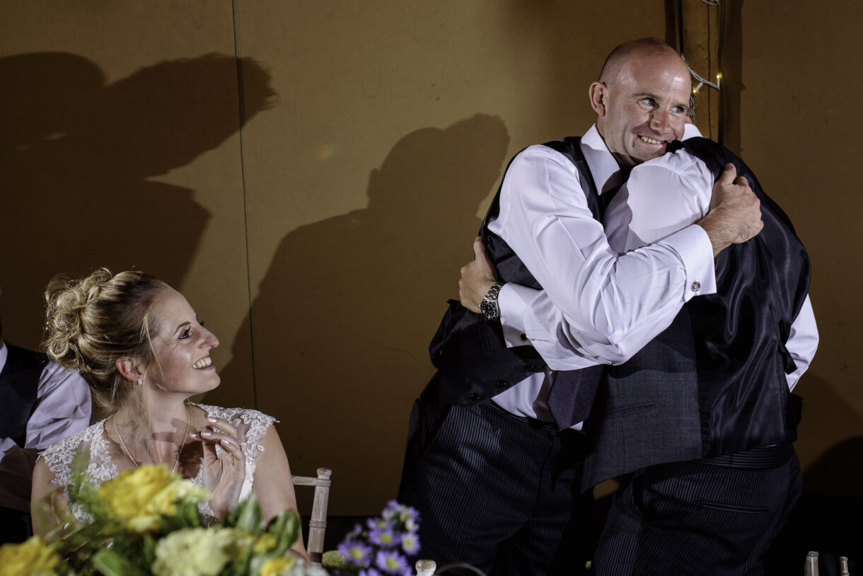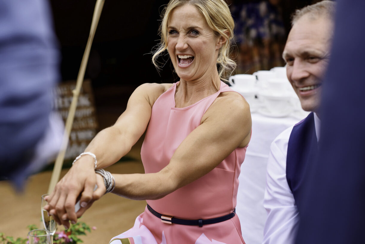 It can always be a bit of a risk to plan an outdoor event in the UK, but on this day the sun was beaming down on the couple. In fact there was not a drop of rain all day so we were able to get plenty of candid shots of our guests milling around outside, lounging on tree stumps or hay bales, and in a couple of cases, bringing the dogs to the party! A band started up in the evening and the dance floor was soon full. Many of the guests remained there long into the night only breaking away to keep warm by the fire smouldering outside, or perhaps to toast a marshmallow.